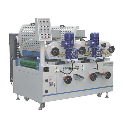 3、各均布輪,膠輪,輸送帶和刮補輪由獨立電機變頻調速控制,從而最大限度的提高涂裝效果。浮動型填補系統能適應工件厚度些微差異,恒定刮補輪的下壓力進而提高板材填平性。